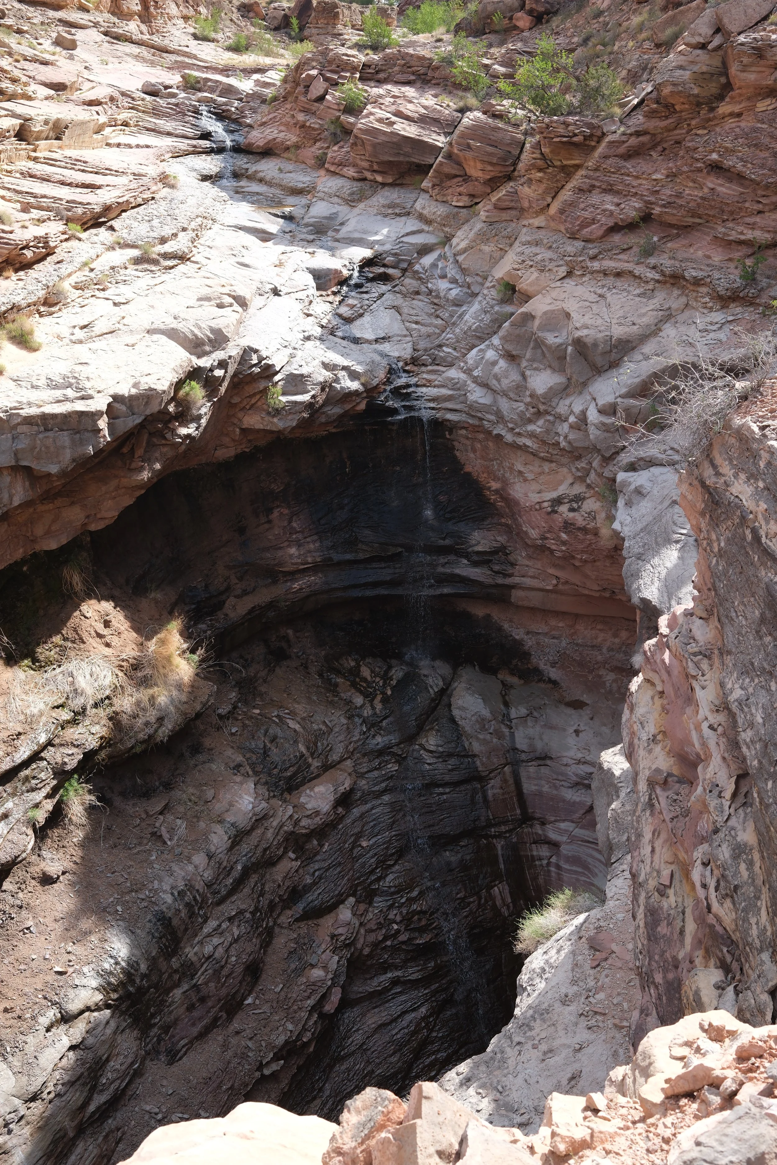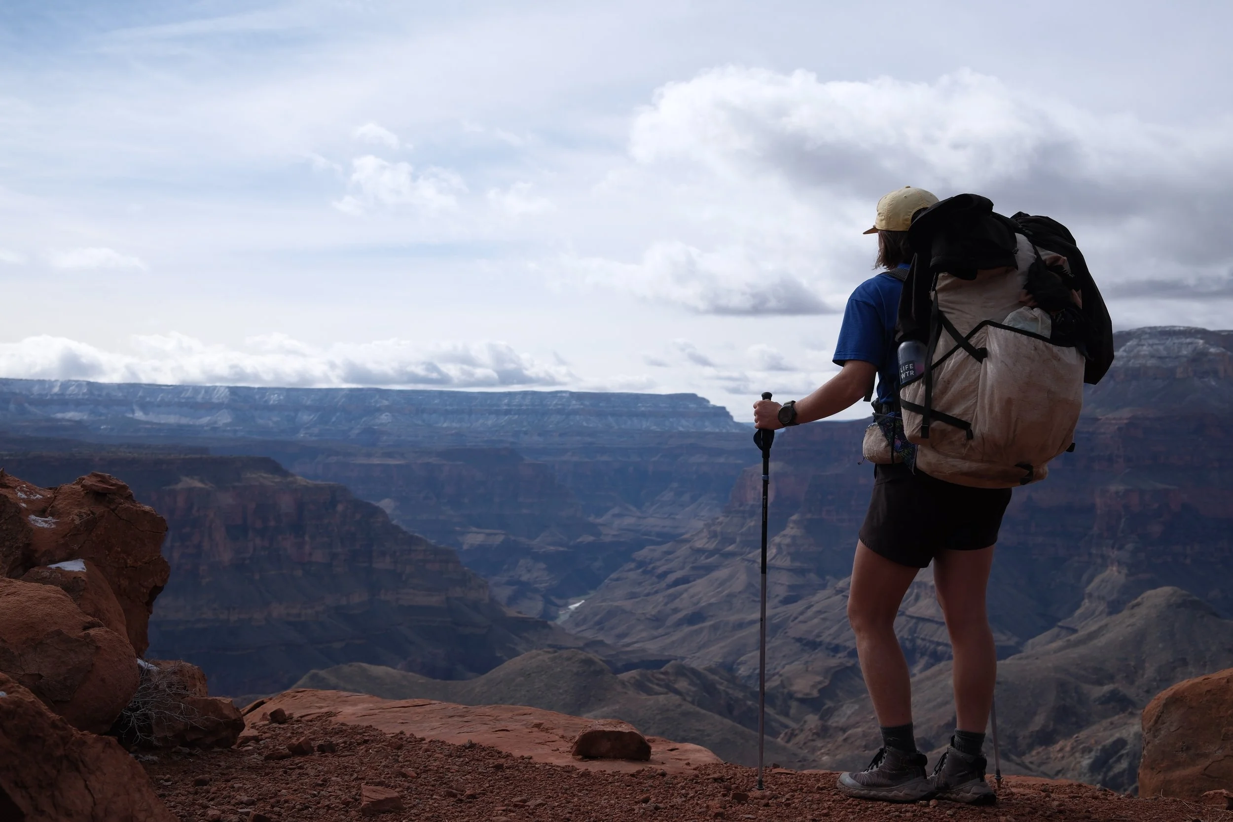 The next morning I dropped down Saddle Canyon quickly hoping to avoid the next round of weather. A few sprinkles started as I was wading through the Tapeats Narrows but I got to camp near Thunder River around 2:00, right as the clouds unleashed. It was nice to be in my tent before I was wet. I’ve been up North Bass and down Saddle/Tapeats twice before, first on the Hayduke, then on my Grand Canyon thru-hike so I knew where camping options were, which alleviated a lot of anxiety and allowed to me to hike more confidently. The next morning the sky had cleared some and as I hiked up into the snow at the top of the Bill Hall Trail light flakes started to fall again. Despite the cold, it was beautiful and I said thank you to the canyon for safe passage. 💚